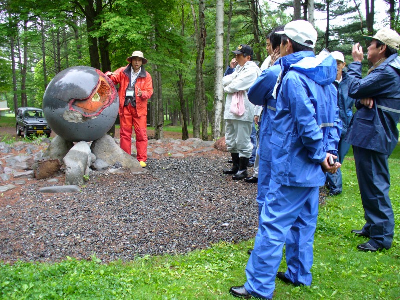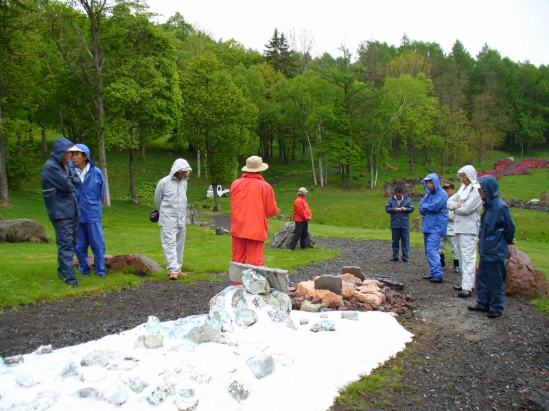5月27日、富良野自然塾で環境教育プログラムの体験・視察を行った。最初に、塾長である倉本聰氏から環境教育の基本講義(緑の教室)を受け、つづいて、「裸足の道」、「石の地球」、「46億年・地球の道」を、フィールドディレクターの斉藤氏の指導のもと体験した。これらは全て今治西部丘陵公園に造られる予定のものであり、今治のものが着工される前に体験できたことは大変意義深いと感じた。