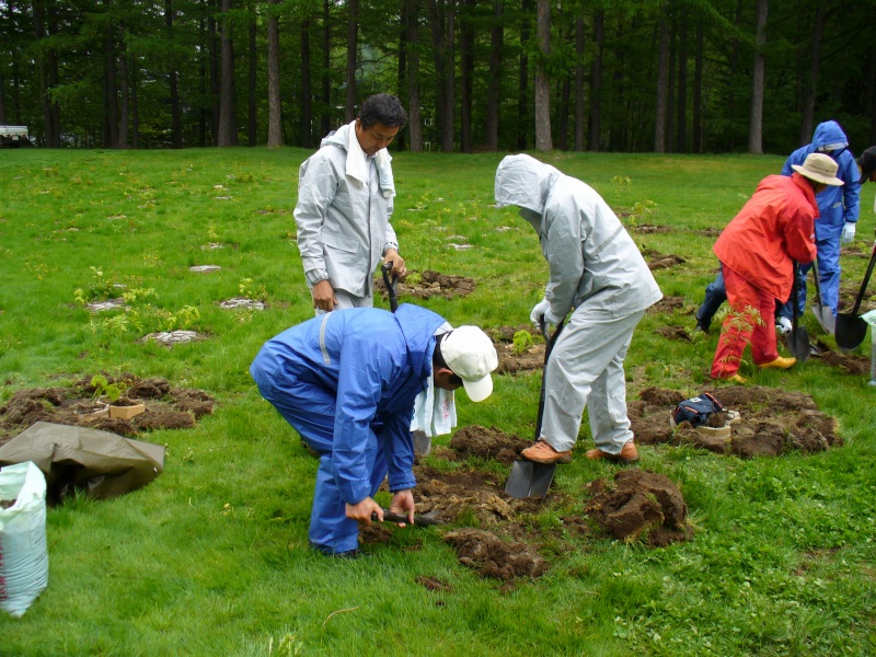 富良野自然塾のフィールドは、閉鎖されたゴルフ場の跡地であり、これを元の自然の返す取り組みから、倉本氏らの活動が始まっている。その一環として、環境教育プログラムの締めくくりに我々も植樹して終了となった。